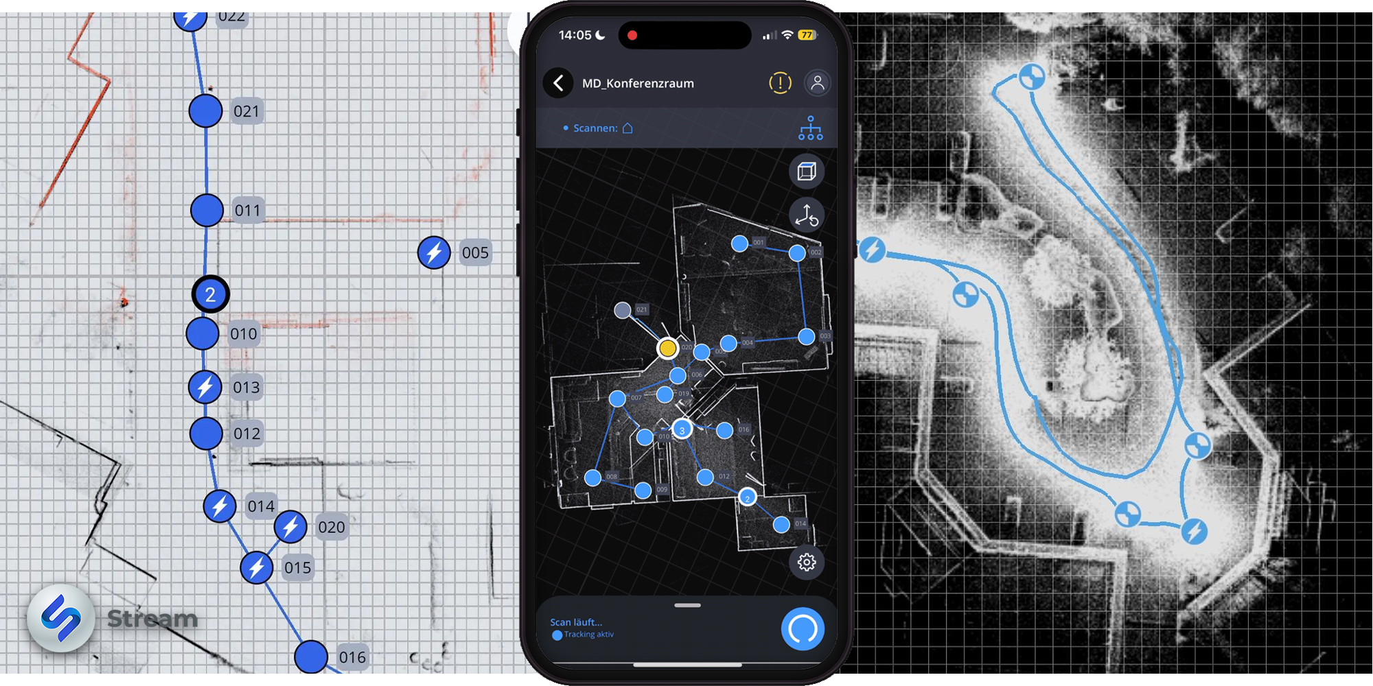 Забудьте про часи, коли геодезист повертався в офіс і з жахом виявляв, що пропустив важливу кімнату. Мобільний додаток FARO Stream (доступний для iOS та Android) дозволяє вам бачити результати сканування прямо на екрані вашого смартфона чи планшета в режимі реального часу. Ви одразу бачите план приміщення, що формується, контролюєте перекриття між станціями та можете додавати текстові анотації чи фотографії до конкретних елементів (наприклад, сфотографувати маркування кабелю чи дефект стіни, і ця фотографія автоматично прив'яжеться до 3D-координати у хмарі точок).
